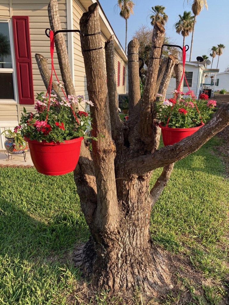 What a beautiful idea! May 10, 2021Victoria Palms Resort Take a look at this clever and beautiful idea for decorating a dead tree stump! This picture is of a tree on the lot of one of our very own staff members, Jeannine Addy! Very nice!