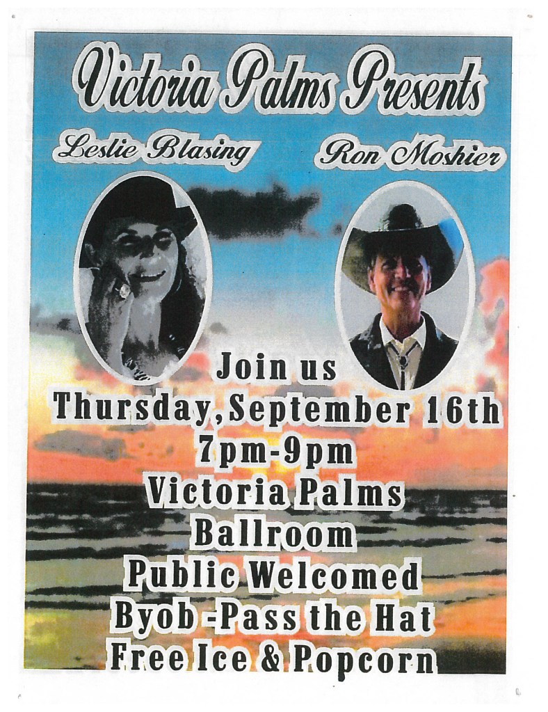 Leslie & Ron – Dance – Thursday – 7:00 – 9:00 pm, No charge, BYOB Image September 13, 2021Victoria Palms Resort