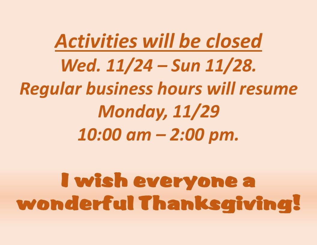 Activities wishes you all a Happy & Safe Thanksgiving