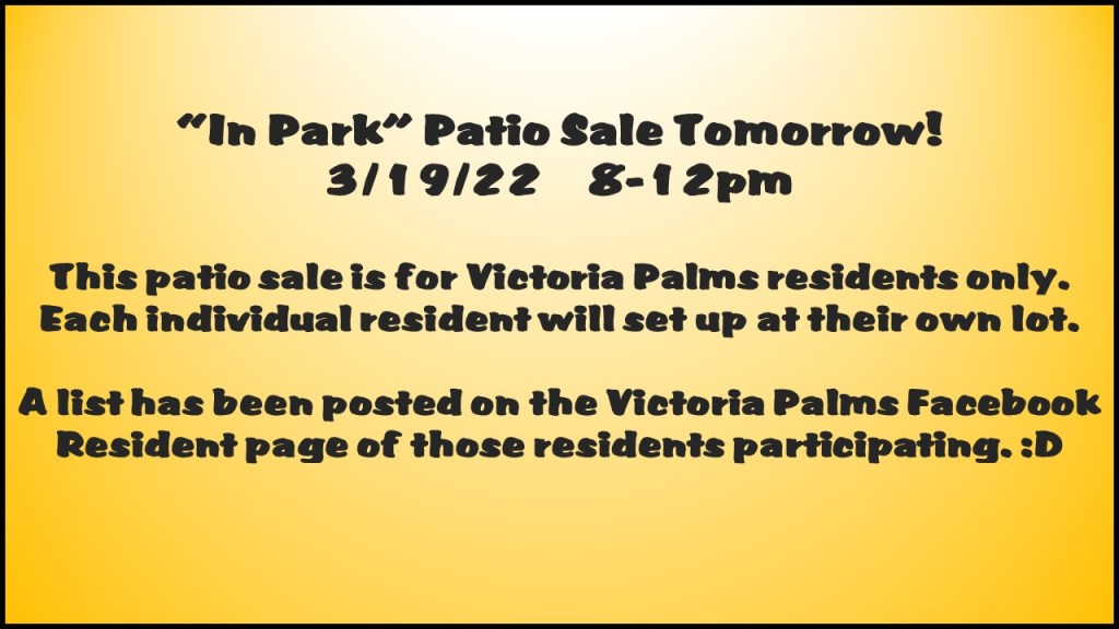 In Park Patio Sale 3/19/22 8-12pm
