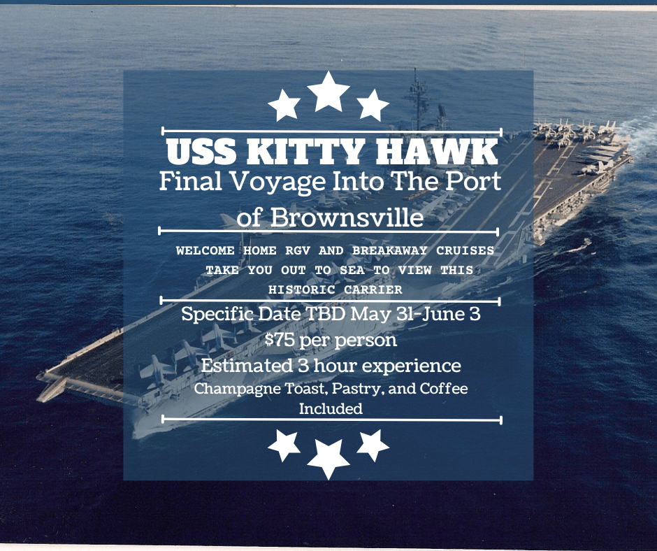 The USS Kitty Hawk is currently en route to the Port of Brownsville and is scheduled to arrive on or around May 31, 2022.