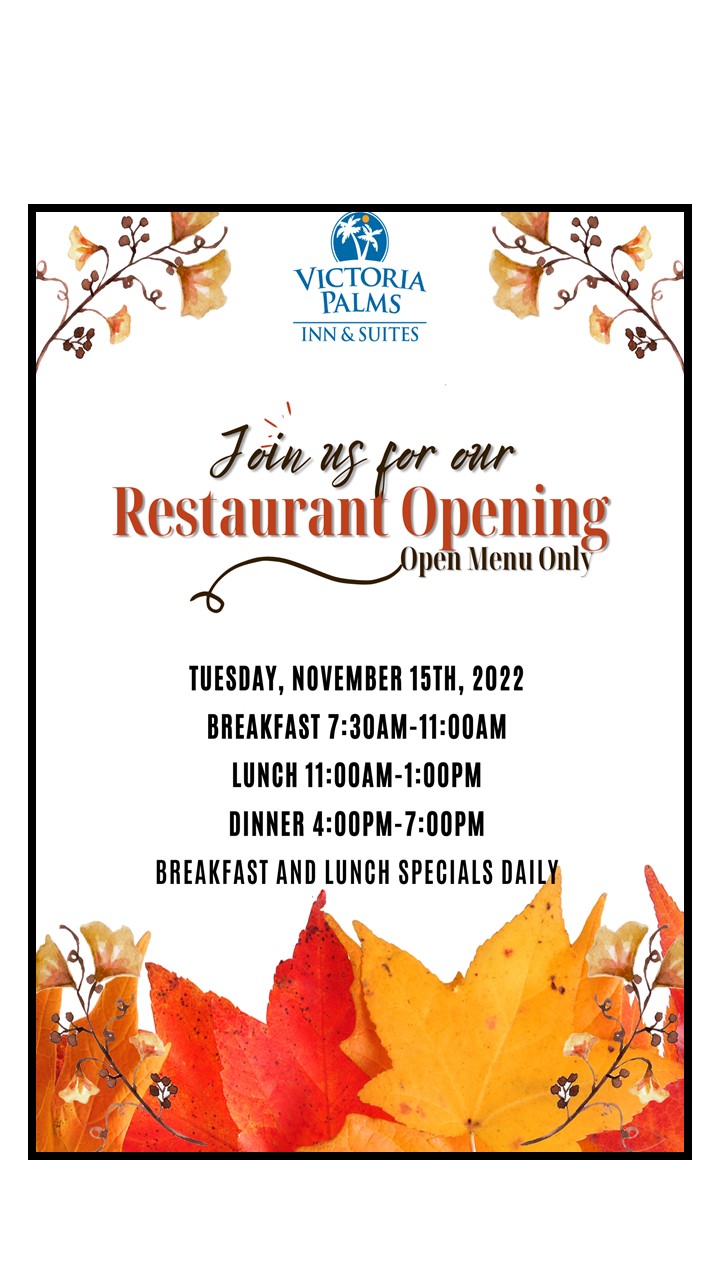 Victoria Palms Restaurant is Opening Soon!
