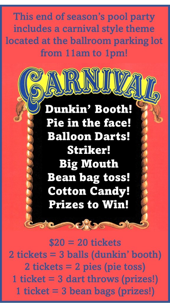 End of Season Pool Party Carnival Theme!