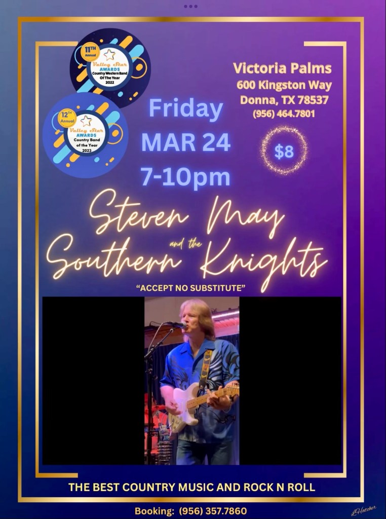 Steven May & the Southern Knights 7-10pm $8 ticket @ the ballroom! March 22, 2023Victoria Palms Resort
