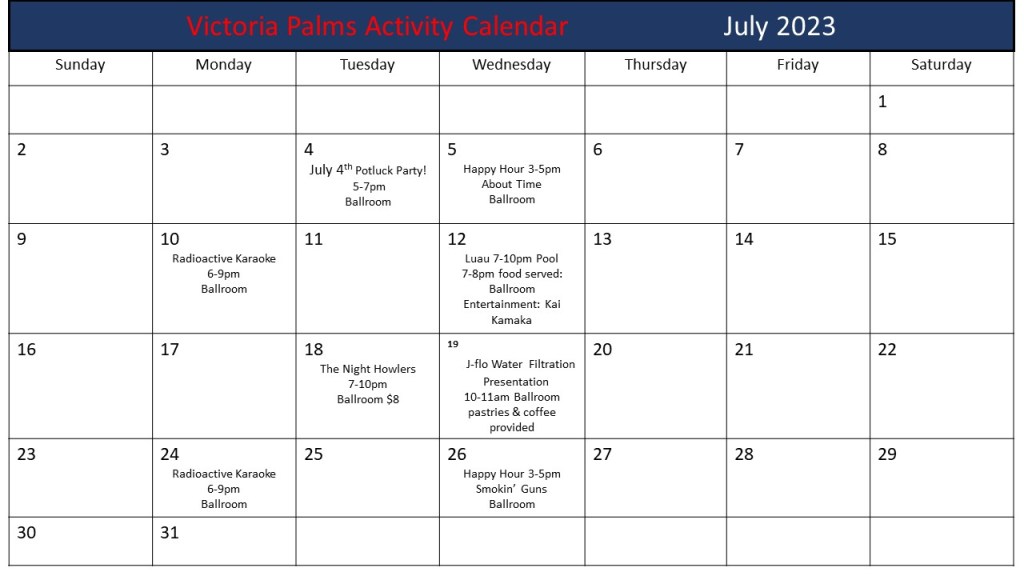 Revised July Calendar 2023