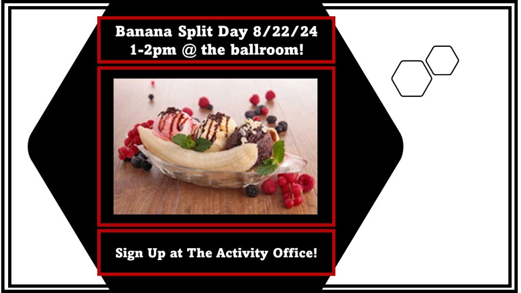 Banana Split Day! 8/22/24 1-2pm @ the ballroom