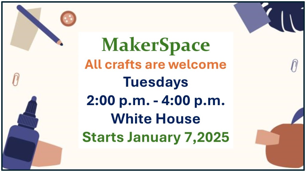 MakerSpace News! November 20, 2024November 20, 2024Victoria Palms Resort MakeSpace is a social gathering for creative minds! Bring your craft of choice to work on while you socialize with other creative folks. 😀