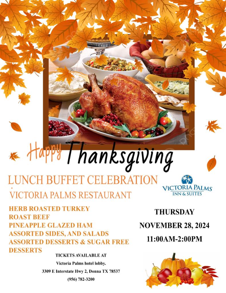 Join us for the Annual Victoria Palms Inn & Suites Thanksgiving Holiday Brunch on November 28th from 11 a.m. to 2 p.m.!
