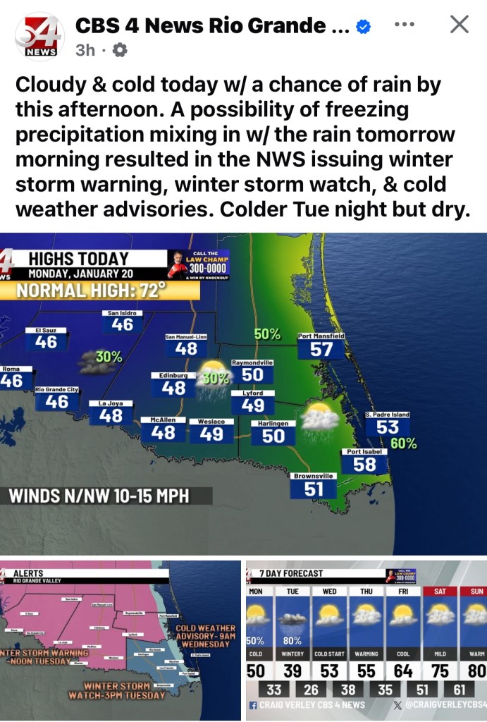 Weather update: January 20, 2025Victoria Palms Resort As of 5am Monday Jan. 20 CBS RGV has announced….