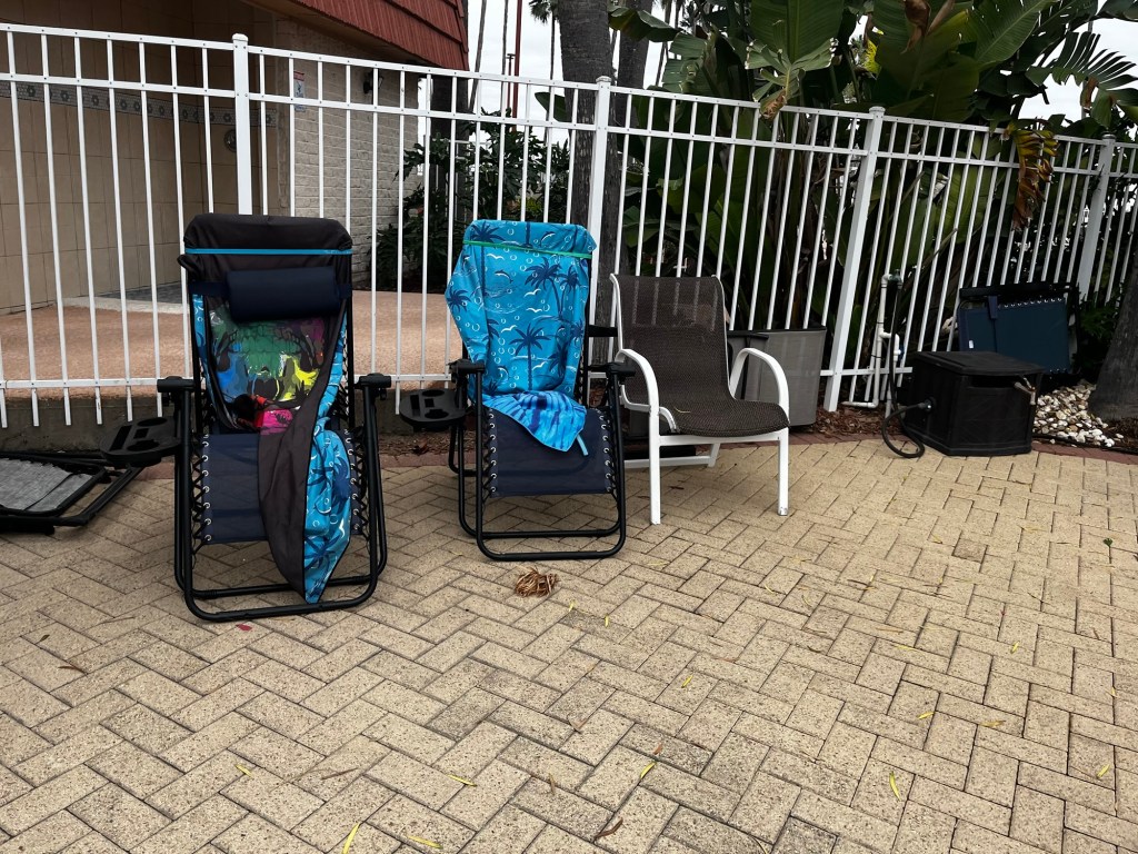 Please be advised that while it’s okay to bring your loungers and chairs to the pool, you must take them with you when you leave. Any items left behind will be discarded during pool servicing. Also, placing an unaccompanied towel over a lounger or chair does not “reserve” it, and will be removed and placed on the pool fence.