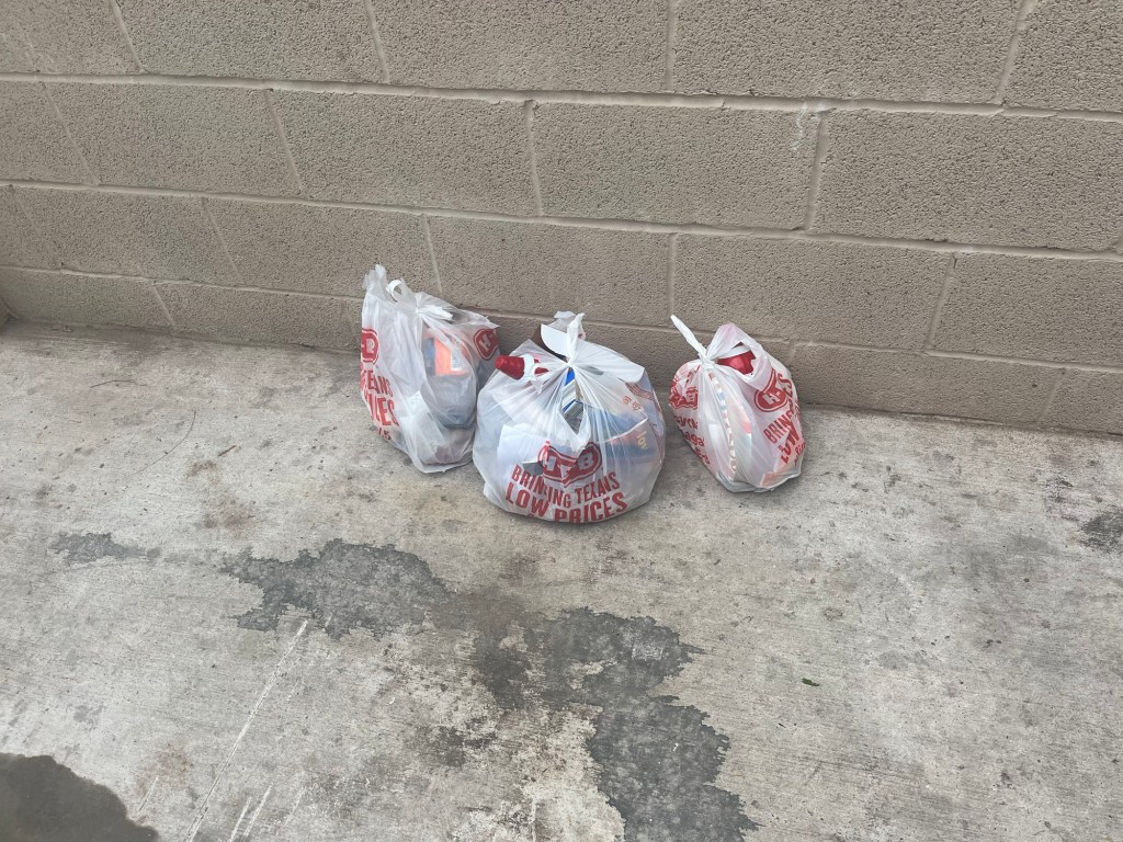 New trash bins have side opening for trash disposal. Trash must not be thrown on top of bins or left on the ground. Violators are subject to fines for noncompliance.