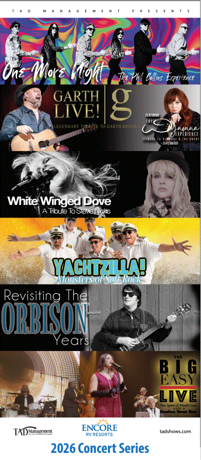 2026 Concert Tickets on Sale March 10, 2025Victoria Palms Resort Purchase your 2026 Concerts tickets from the Activity office.