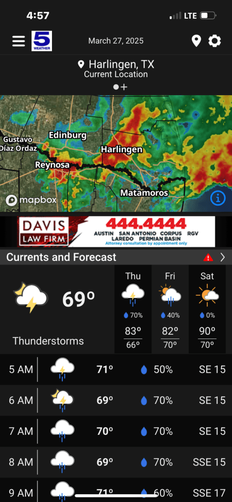 Weather alert March 27, 2025Victoria Palms Resort Localized flooding in our area Thursday March 26 and Friday March 28. Use caution when driving.