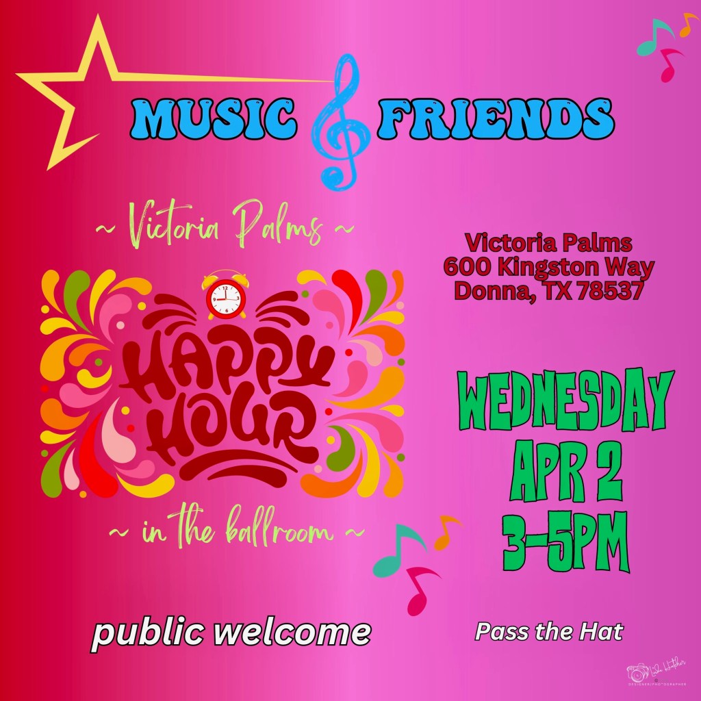 Happy Hour with Music & Friends 4/2 3-5pm @ the ballroom (pass the hat) March 31, 2025Victoria Palms Resort