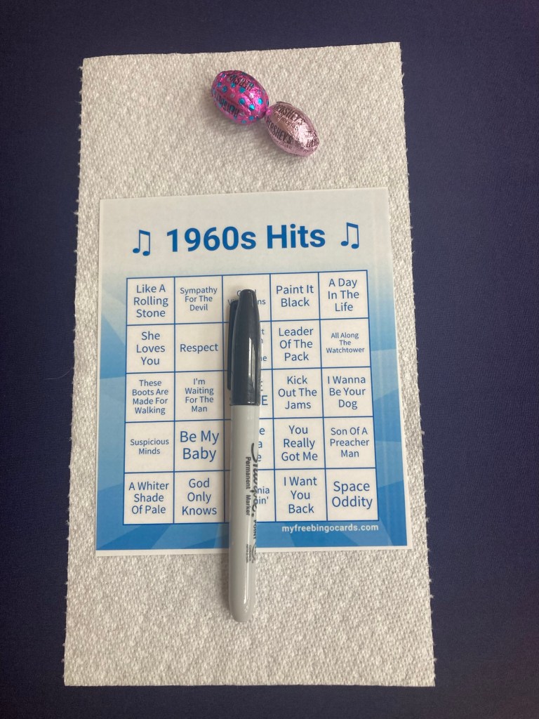 The residents had a lot of fun hamming it up during Music Bingo—which is the idea! They sang along, added some moves and air played their instruments. Looking forward to the next one!
