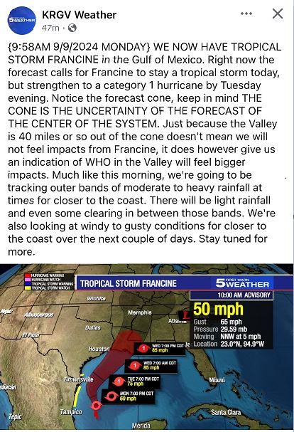 Tropical Storm Francine Update 9-9-24 @ 9:58am