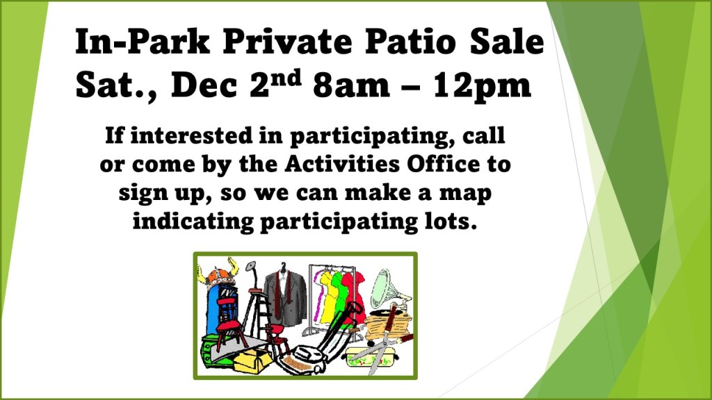 In Park Patio Sale! Dec. 2nd