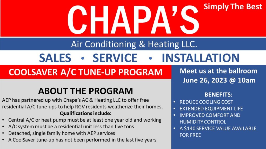 Chapa’s A/C & Heating Presentation June 26th 10am @ the ballroom