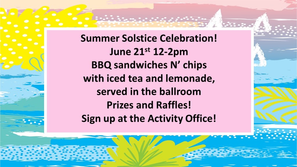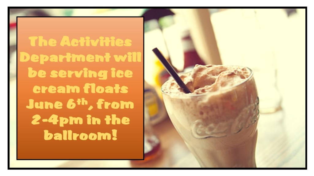Ice Cream Floats! June 6th, 2-4pm in the ballroom