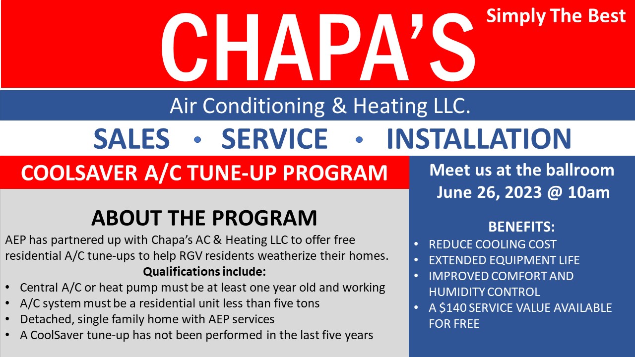 Chapa’s A/C & Heating Presentation June 26th 10am @ the ballroom